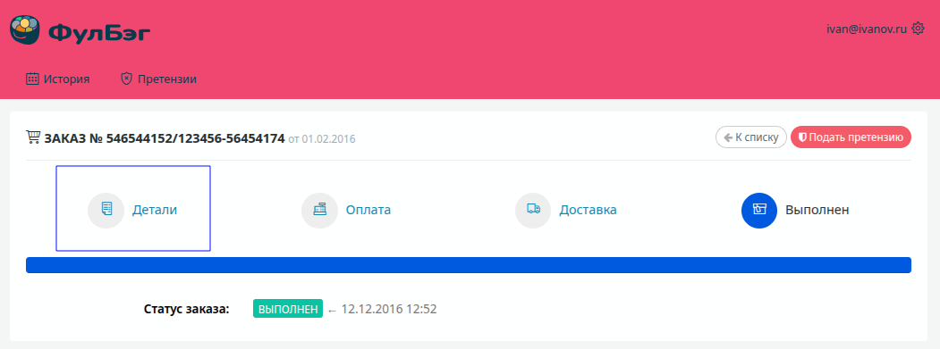 Просмотр деталей заказа: для ознакомления с информацией о заказе разверните