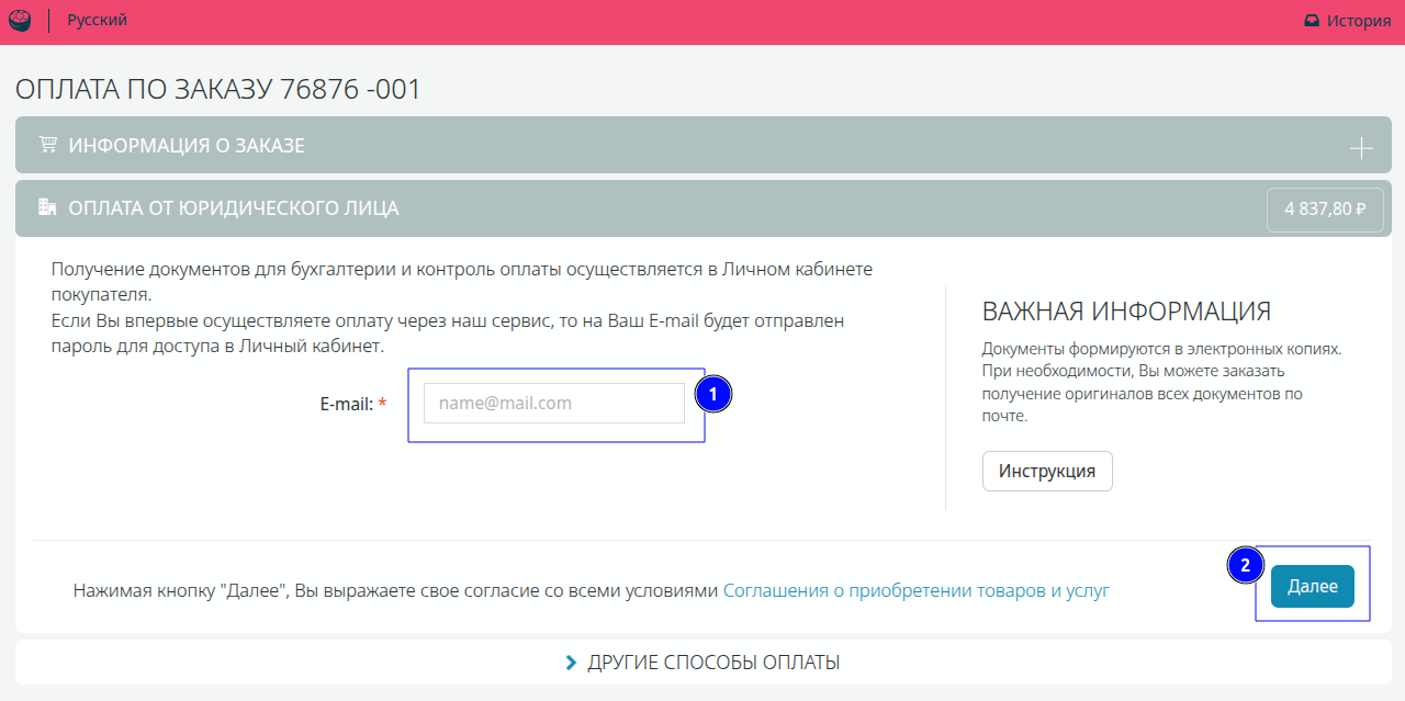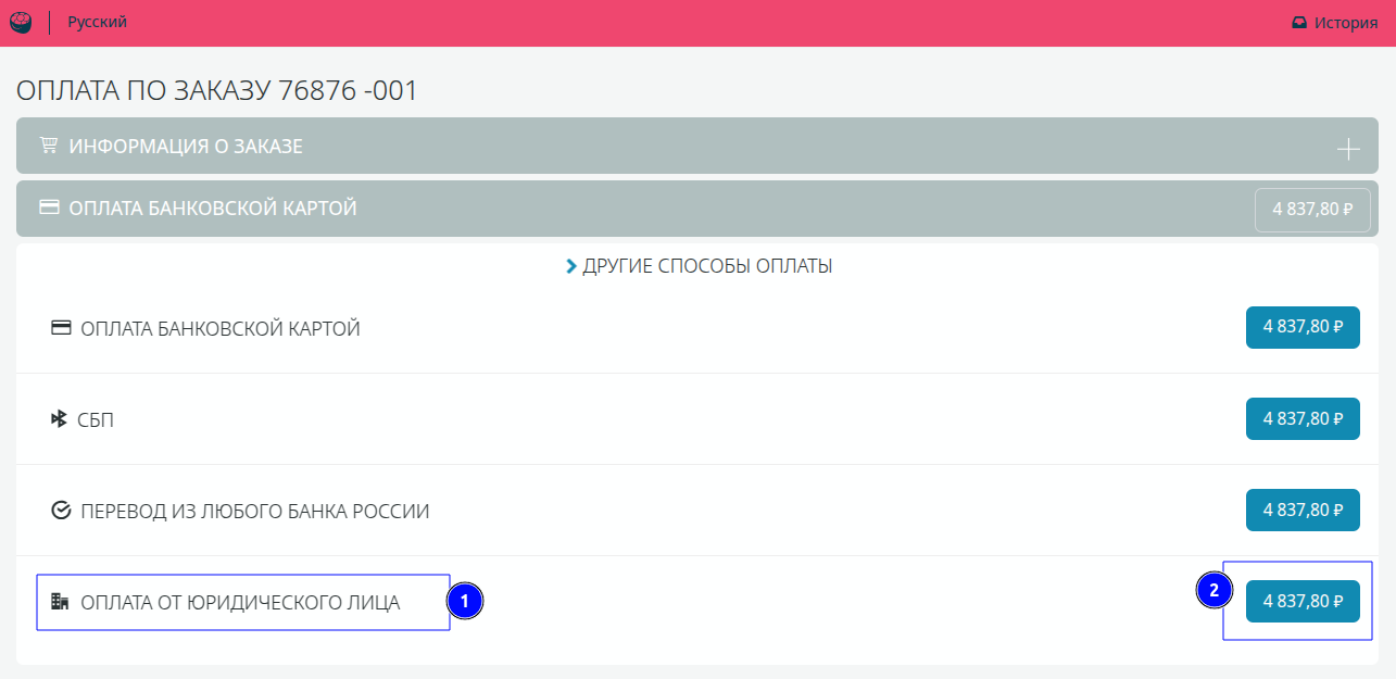 Пошаговая инструкция по оплате заказа от имени юридического лица