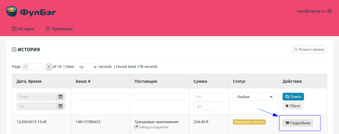 заказ. Кликните на ссылку «Подробнее».