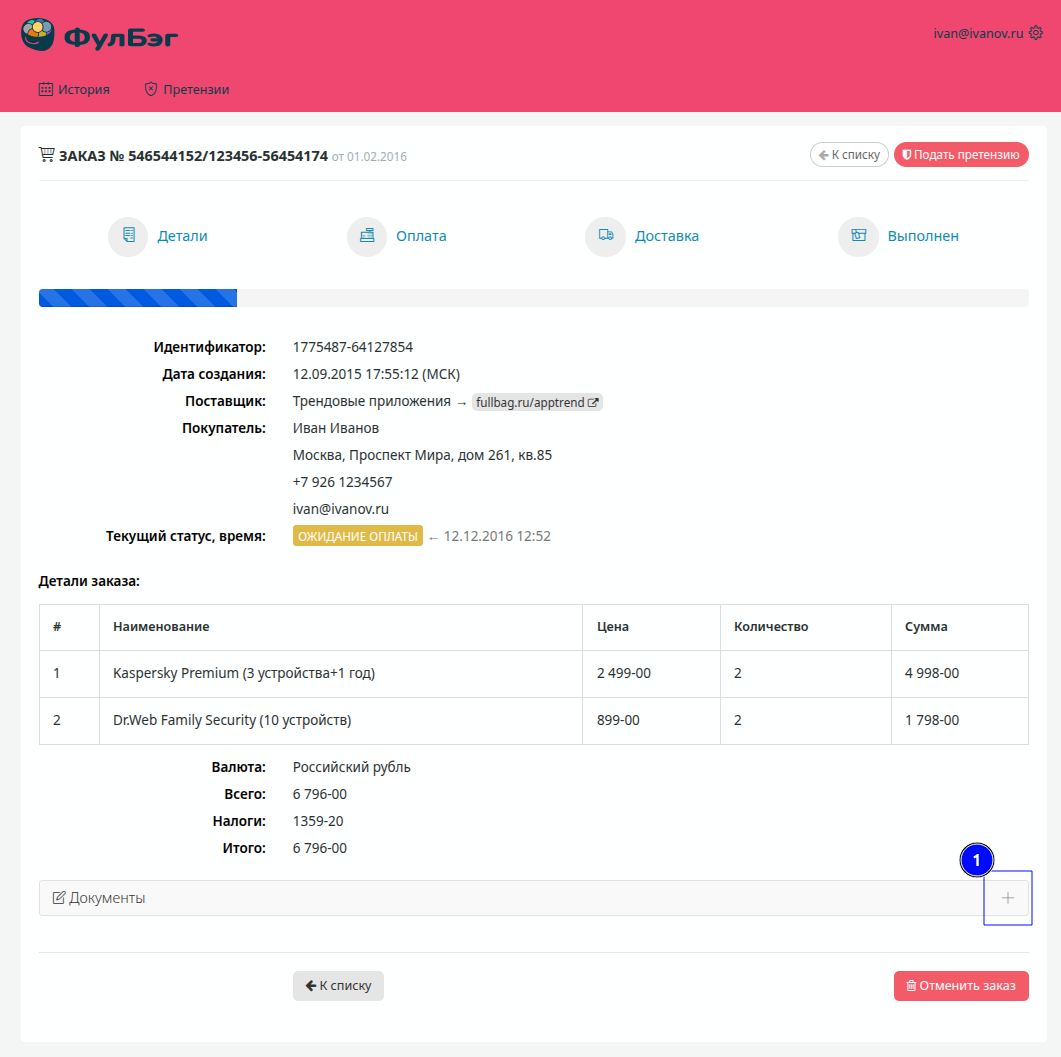 Оформление заказа: после успешного размещения заказа на платформе ФулБэг