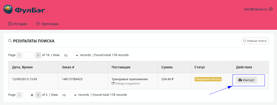 Перейдите на портал для покупателей ФулБэг — fullbag.ru/my;