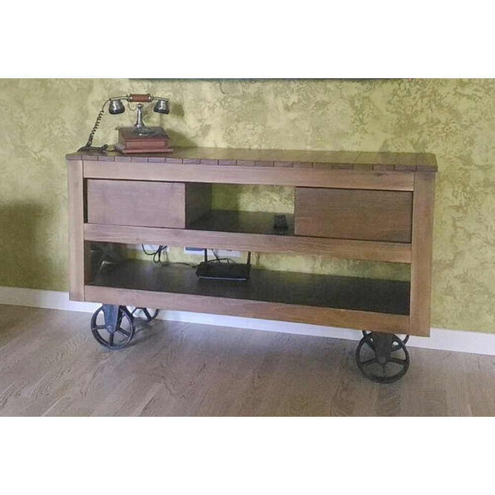 Тумба для интерьера. Изготовлена из массива сосны. Состаренная древесина.Сама тумба массивная, но колеса создают легкость и даже невесомость всей конструкции. Текстурированная древесина подчеркивает характер.Тумба изготовлена по индивидуальному заказу, точное повторение невозможно.Наша мастерская изготавливает мебель и изделия для интерьера из состаренной древесины и фанеры. Беремся за любые сложные и интересные заказы!