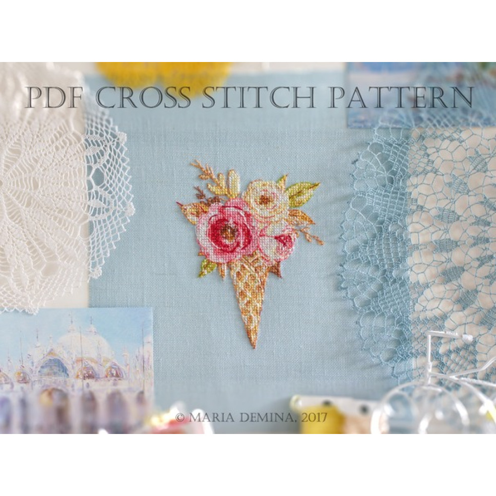 Акварельное Цветочное Мороженое - схема для вышивки крестом