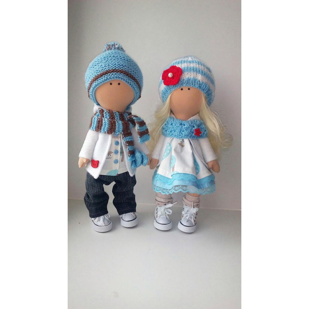 Парочка из мальчика и девочки не оставит равнодушной никого, ни малышку,ни взрослую девушку или парочку молодых. Это будет отличный подарок на любой праздник, который останется Вам на долгие годы и будет радовать своим теплом и красотой! Рост кукол 28-30 см. Одежда не снимается.
