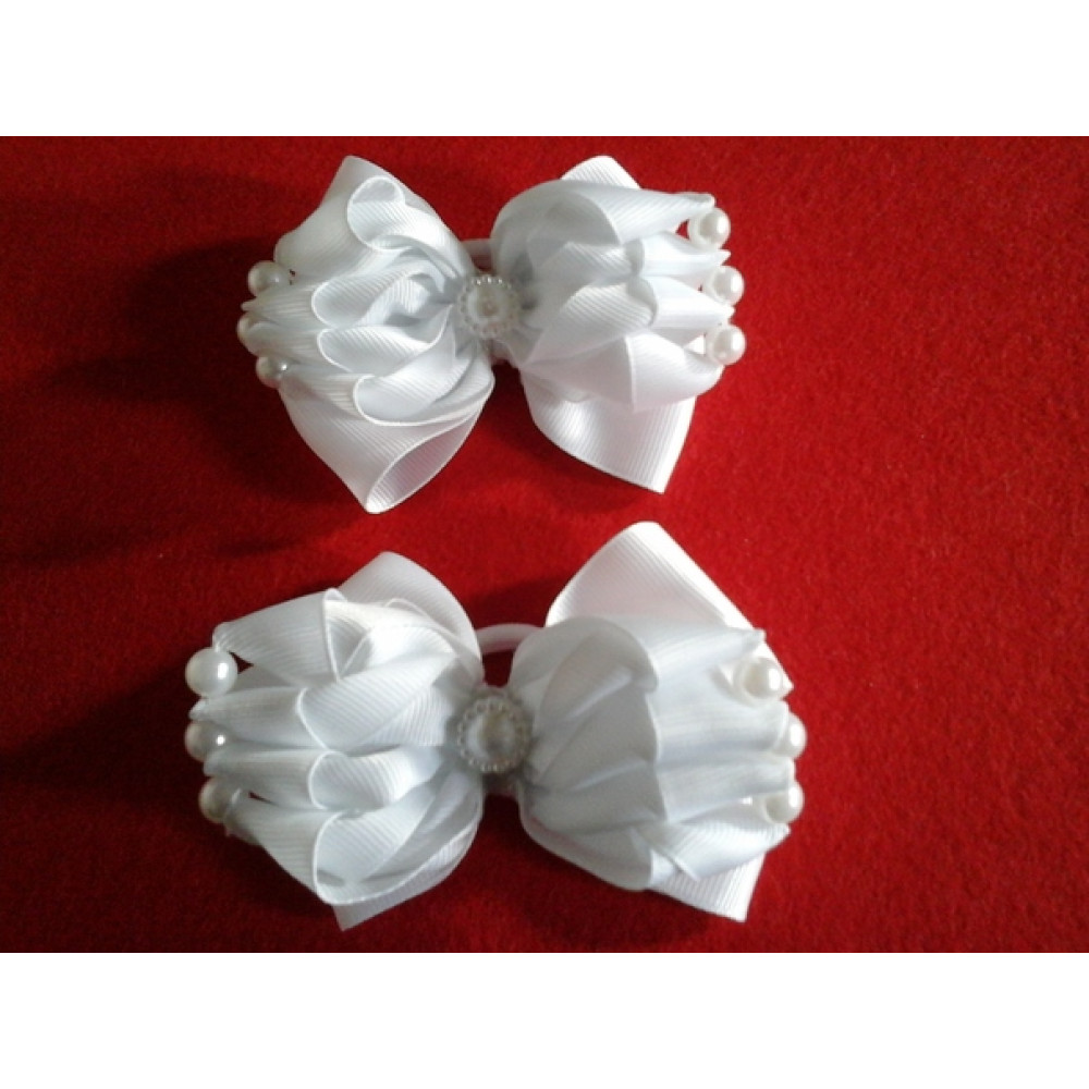 Бантики изготовлены из атласной ленты и бусин.Крепятся на бесшовной резинке.
