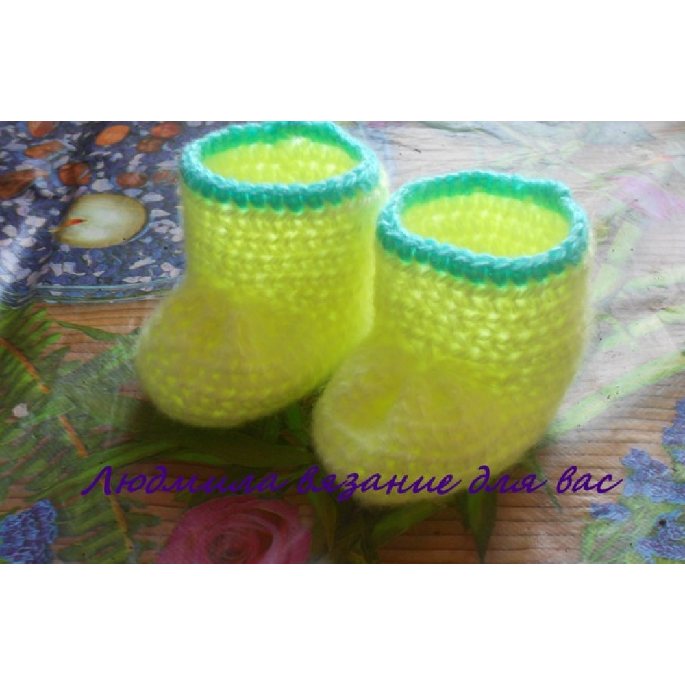 Теплые мягкие пинеточки из акриловой пряжи. В них вашей крохе будет тепло и уютно. Разноцветные пинетки подойдут как для выписки из роддома и других торжественных случаев так и для повседневной носки. Размер 8 см.
