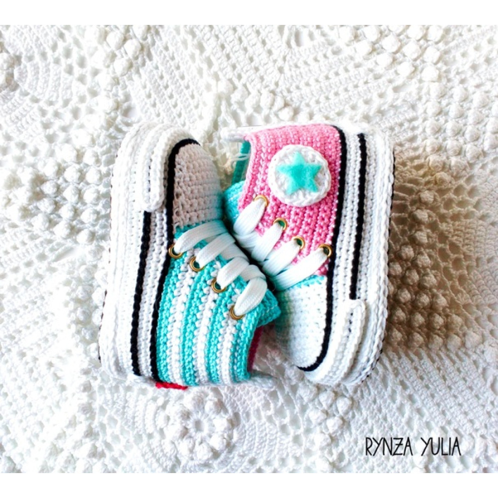 10см - (0-3мес)11 см - (3-6 мес)12 см - ( 6-9мес)13 см - ( 9-12 мес)14 см - ( 12-18 мес)15 см - ( на 2 года) Срок изготовления 5 дней!!! Прошу учесть при заказе!! Кеды "Конверсы" связаны из натурального хлопка. Хорошо подойдут для весны, лета и осени. Можно обувать как на носочек так и на босую ножку. В сочетании с детской одеждой ваш малыш будет выглядеть стильно, а яркие цвета придадут ещё больше индивидуальности вашему ребенку.Для более удобной носки и комфорту ножки малыша добавлен хлопковый задничек средней жесткости( см.фото), что снизит риск деформации стопы ребенка при носке. Также имеется двойная подошва, внутри которой вставлена гибкая стелечка, что позволяет с легкостью малышу сгибать ножки.Сам кедик дополнительно украшен декоративными элементами, которые не только придают красочность кедам, но и позволяют держать форму .В кедах используется качественная немецкая металлофурнитура фирмы PRYM Prym - это ведущий мировой производитель инструментов и принадлежностей для шитья, вязания, вышивки, пэчворка, а также металлофурнитуры, молний и текстильной галантереи.Год основания фирмы - 1530Это абсолютная гарантия хорошей переносимости принадлежностей, находящихся в непосредственном и длительном контакте с кожей.Большинство выпускаемых текстильных изделий отмечено знаком «Oeko-Tex» который подтверждает безопасность для человека всех веществ находящихся в них.Все металлические продукты и детали не содержат аллергенного никеля.ВАЖНО!!!!Не лишайте комфорта вашего ребенка, так как большинство современной обуви изготовленная из полимерных материалов плохо пропускает воздух и не позволяет дышать ножкам,что приводит к деформации и различным заболеваниям стоп, в отличие от натурального хлопка и др. натуральных материалов. Теперь вся вязаная обувь для ваших малышей в моем магазине будет с подошвой!!!! ( микропористая резина), что позволит более практично носить эту обувь. Теперь ваш малыш сможет смело ходит��, бегать и прыгать в хлопковой обуви !! Данный материал обладает особыми качествами: эластичностью, мягкостью, легкостью и пористостью. Поры, которыми характерна резина, являются не сквозными, а носят замкнутый петлистый характер, что обеспечивает обуви воздухопроницаемость. Материал не токсичен, прекрасно сохраняет тепло и не сильно скользит, несмотря на отсутствие на обуви мощного протектора и шипов. При ходьбе по снегу происходит довольно надежное сцепление и обувь не скользит даже на утоптанной дороге.