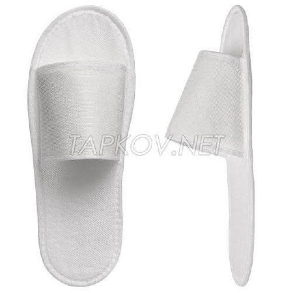 Спанбондовые тапочки (не махровые). Самый экономный вариант. Не скользят на мокром кафеле. Если бюджет ограничен, но нужны тапочки - эта модель отличный выбор для сауны, бани душа и прочих "влажных" мест.