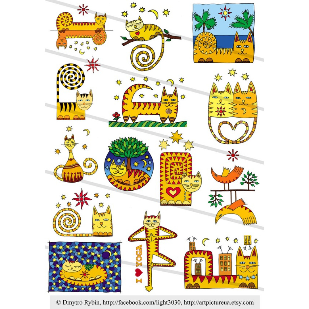 Комплект раскрасок для детей и взрослых.Коты и птицы.Серия из 14 черно-белых рисунков для раскрашивания гелевыми ручками, фломастерами, карандашами, красками. Раскрашивать могут взрослые и дети.В комплект входят также образцы раскрашивания по каждому рисунку.Вы можете использовать готовые образцы, а можете раскрасить на свой вкус. Комплект раскрасок предоставляется в электронном виде в pdf-файле сразу после оплаты. Каждый рисунок на отдельной странице. Можете распечатать несколько копий и раскрашивать с друзьями или с детьми. Раскрашенную картину можно вставить в рамку и повесить на стене в своей комнате или подарить.