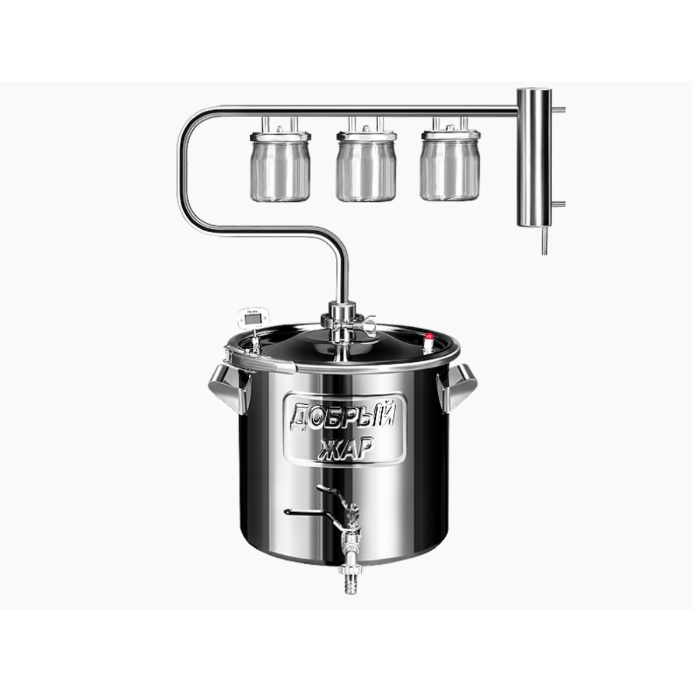 Ферромагнитное дно позволяет использовать перегонный куб на любой нагревательной поверхности: электрической, стеклокерамической, газовой и индукционной. Бак также можно использовать как емкость для брожения, установив в крышку гидрозатвор.
