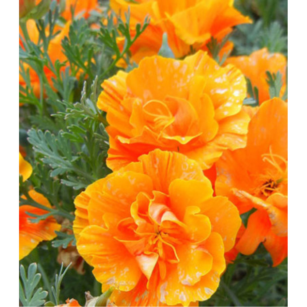 Эшшольция Оранжевая Роза зацветает насыщенными цветами в оранжево-абрикосовой гамме. Лепестки широкие, гофрированные. При этом листва отличается контрастом: она тёмно-зелёная, приглушенная. И как обычно ажурная!