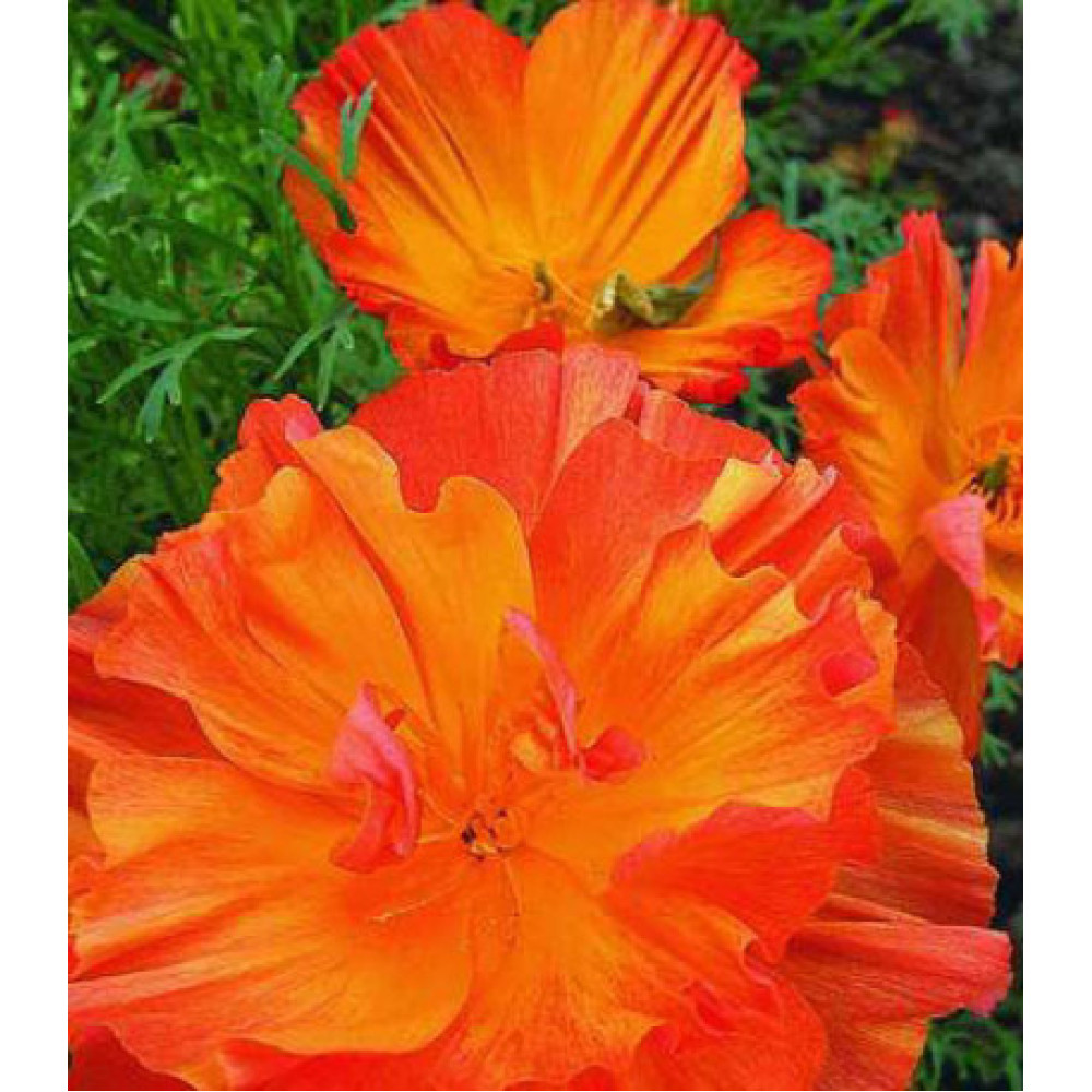 Эшшольция Абрикосовый Шифон – первая однотонная окраска махровой эшшольции! Насыщенные оранжево-красные цветы со слегка гофрированными лепестками отлично сочетаются в смешанных посадках с другими видами растений.