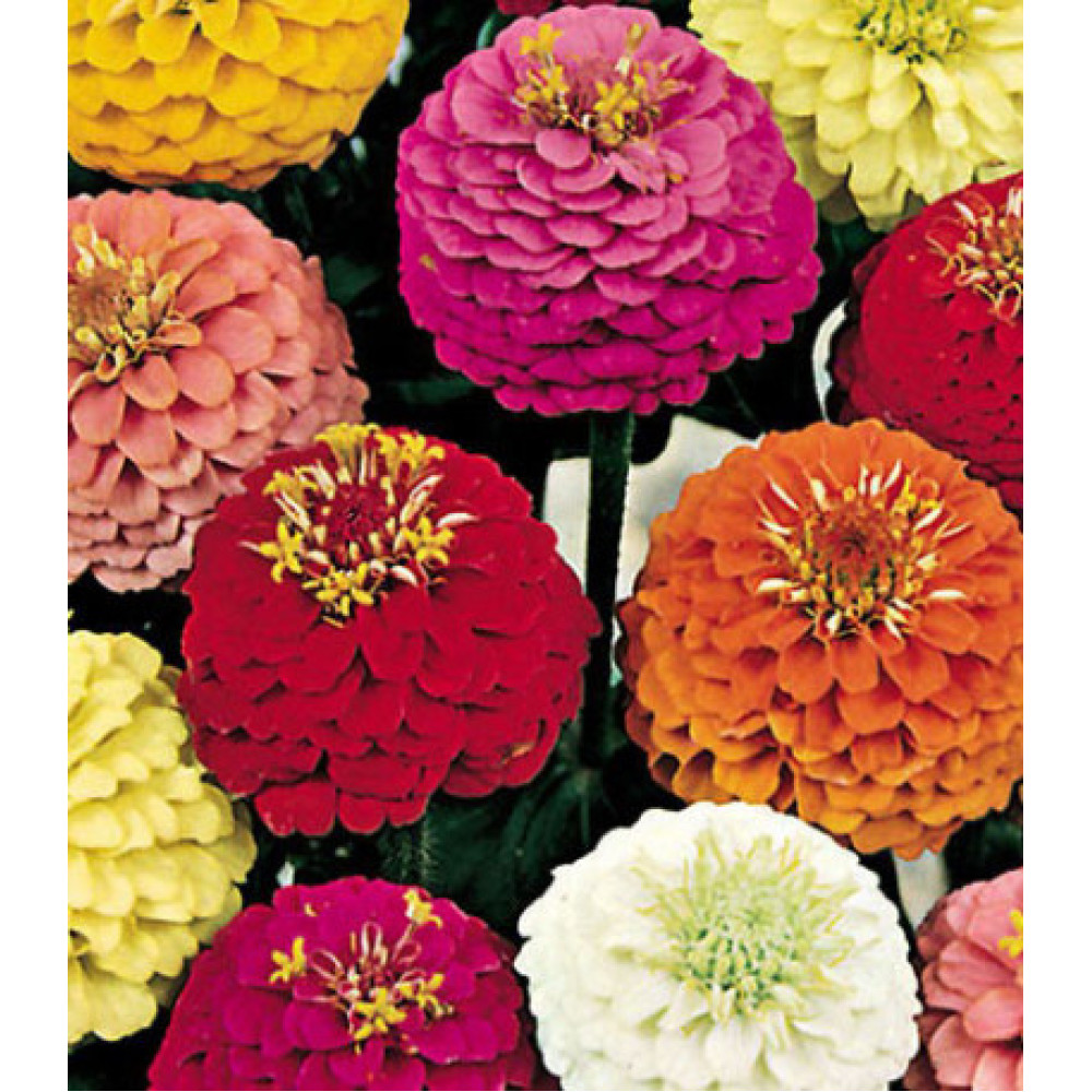 Цинния Фантазия – смесь густомахровых цве��ов необычных и ярких окрасок. Одна из лучших смесей для небольших цветников или балконных посадок! Кустики компактные, не столь высокие.