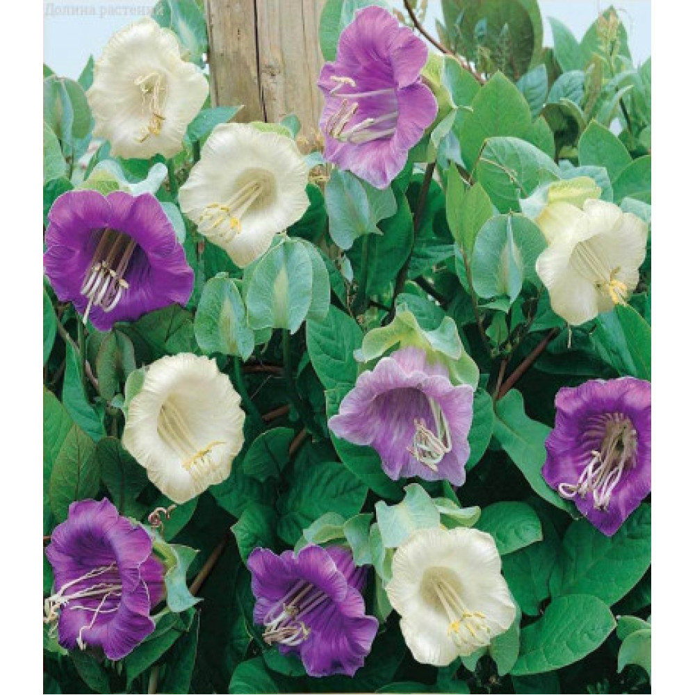 Необычное вьющееся растение. Цепляется за опору усиками, образует многочисленные побеги до 3м. Листья перистые. Цветы колокольчатые, фиолетовые и белые, диаметром 6-8 см.