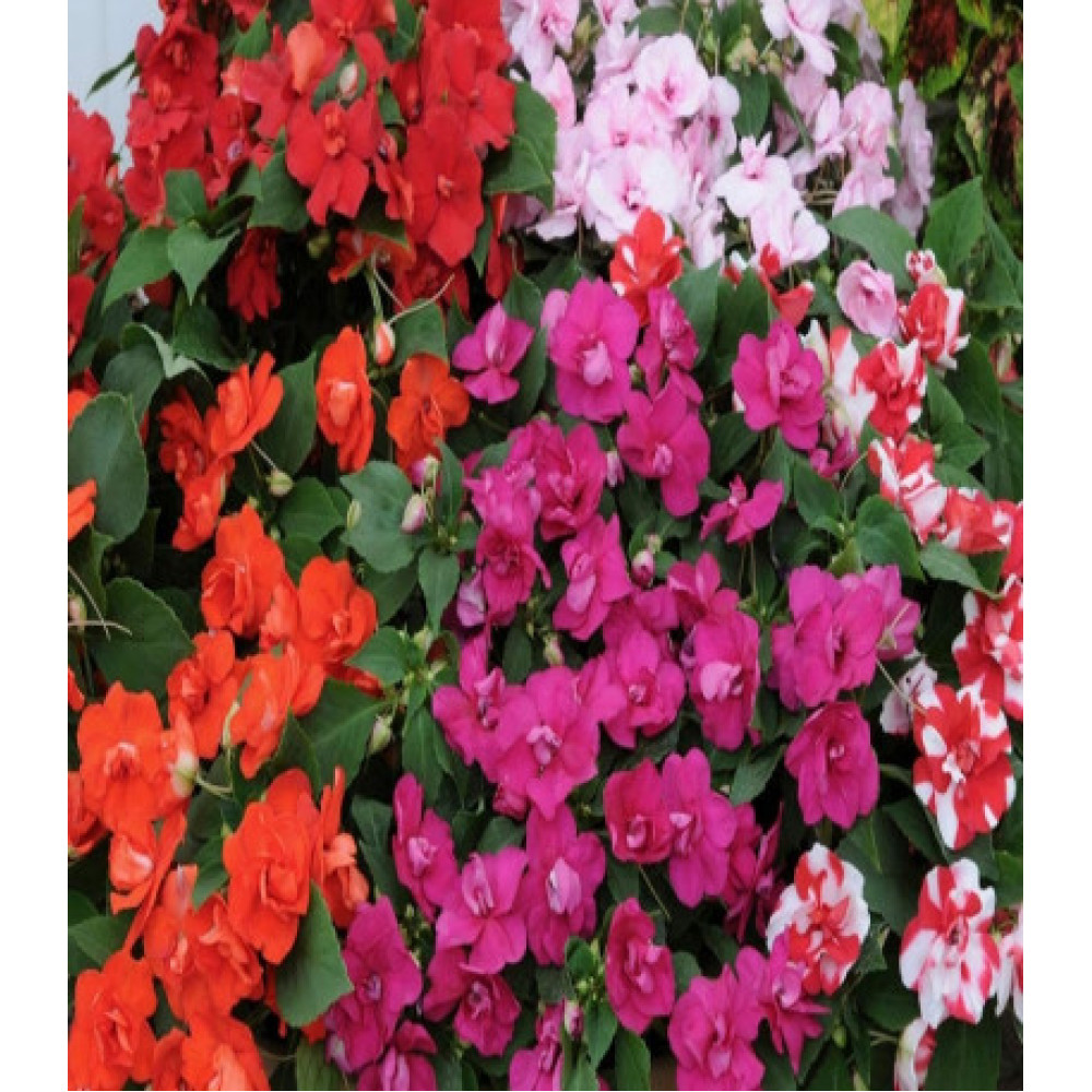 Великолепная смесь махровых и полумахровых гибридных сортов бальзамина. Растения однолетние, неприхотливые, до 25-30 см высотой, образуют пышный кустик.