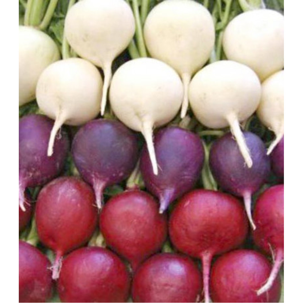 Корнеплоды трех сортов, но все – среднеспелые, сочные и хрустящие, объединены в один пакет. Трехцветная композиция из белоснежных, небесно-синих и алых корнеплодов украсит весенний стол. Сбалансированный, в меру острый вкус, придаст пикантность и аппетитность овощным блюдам и салатам.