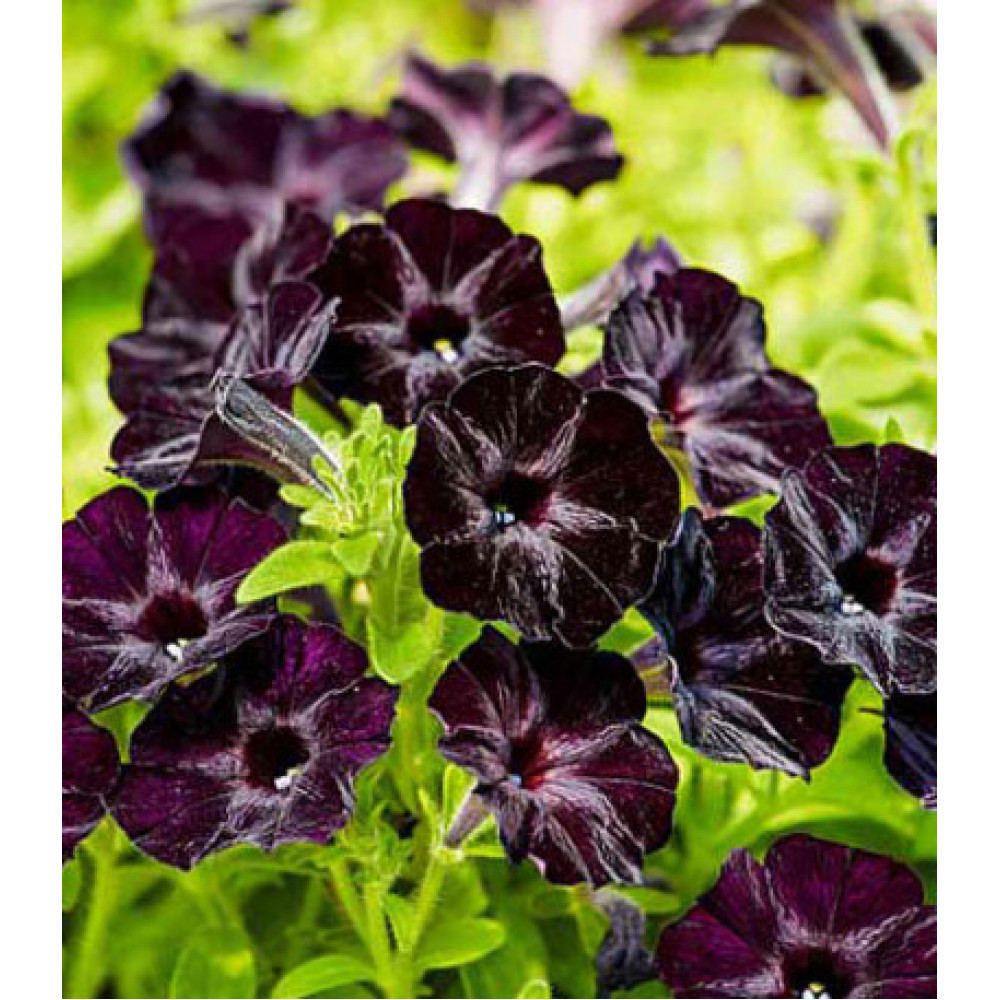 Единственный представитель из семейства петуний с довольно редким явлением – цветки имеют темно бордовый, почти черный окрас. Компактные кустики цветут до самых заморозков, не теряя своего обличия в любых погодных условиях.