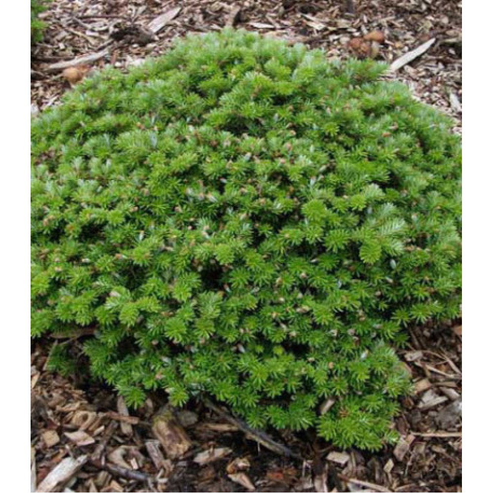 Карликовая кустообразная форма. Высота растения около 0,5 м, диаметр кроны чуть больше. Растет медленно. Скелетные побеги короткие, сильно ветвящиеся, плотно прижаты друг к другу, разрастаются в стороны равномерно, от центра отходят под углом и направлены в стороны и вверх.